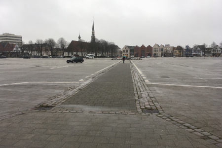 »Der riesige Marktplatz von HEIDE in Schleswig-Holstein, mit den kleinen Häusern weit weg am Horizontrand.« (Peter Handke, Falsche Bewegung, Frankfurt am Main 3. Aufl. 1978, S. 7).